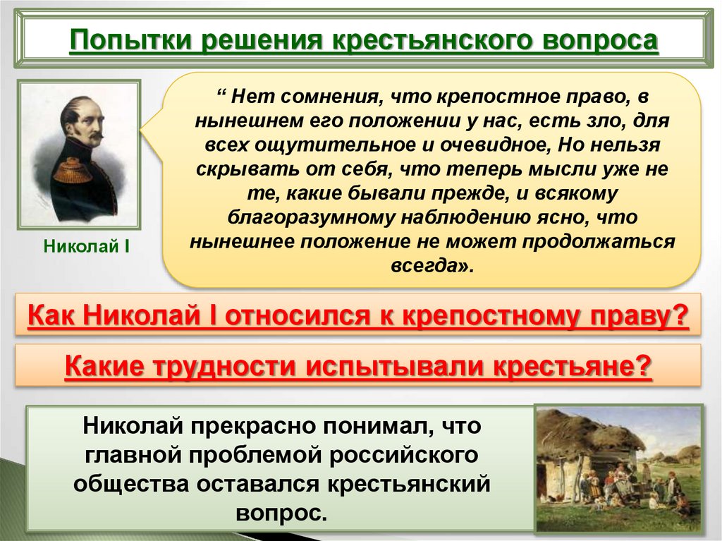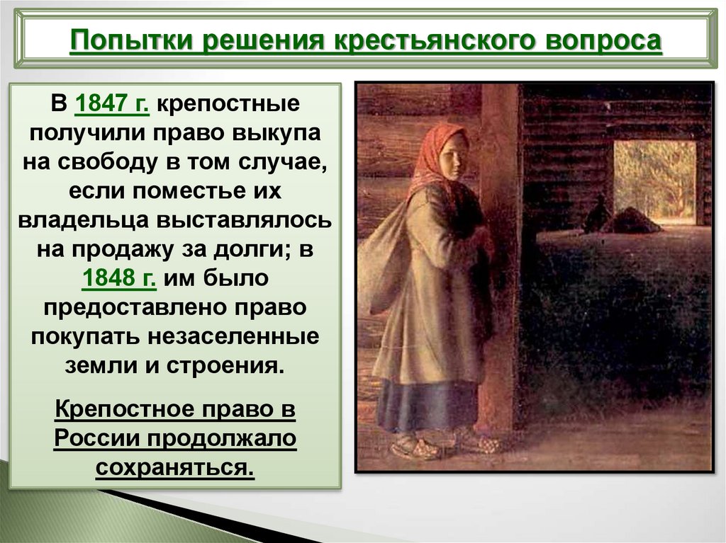 Попытки решения крестьянского вопросаВ 1847 г. крепостные