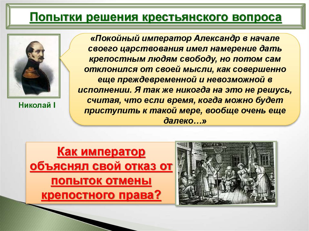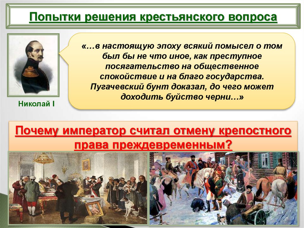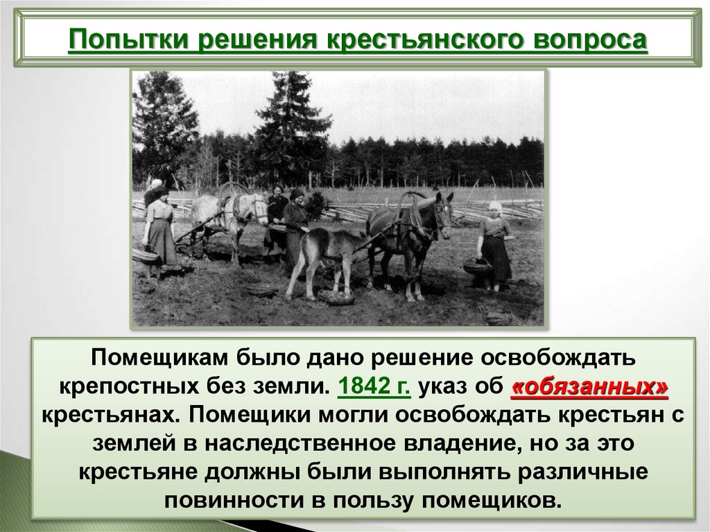Попытки решения крестьянского вопросаПомещикам было дано решение освобождать