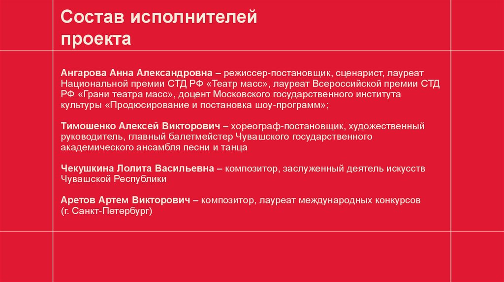 Национальной премии СТД РФ «Театр масс», лауреат Всероссийской премии СТД