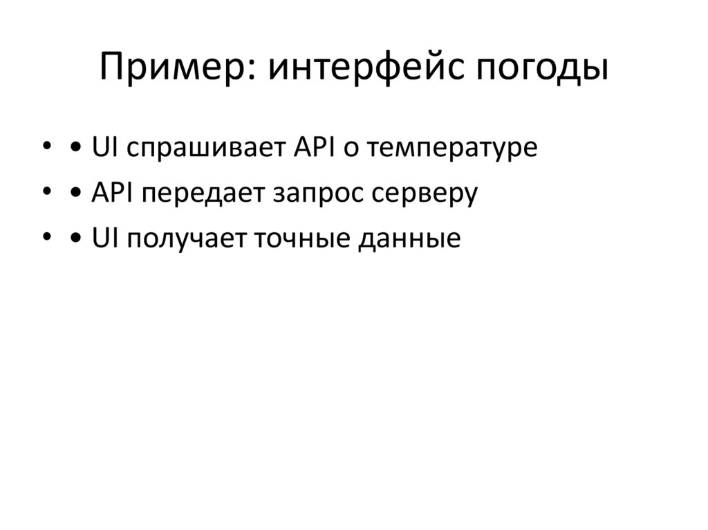 Пример: интерфейс погоды• • UI спрашивает API о температуре