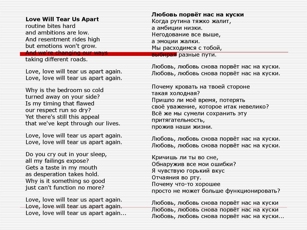 Love, love will tear us apart again...