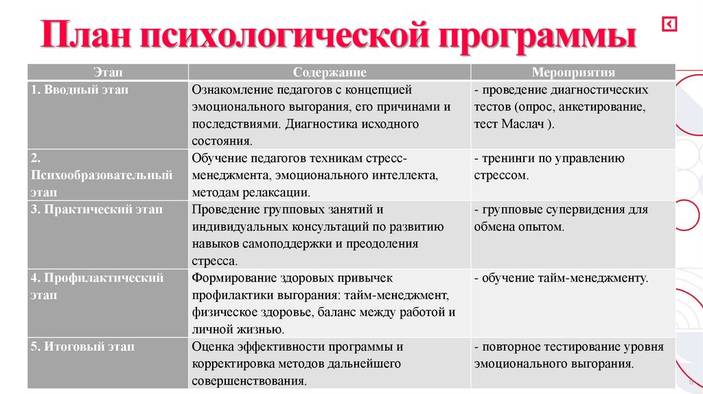 План психологической программыЭтап