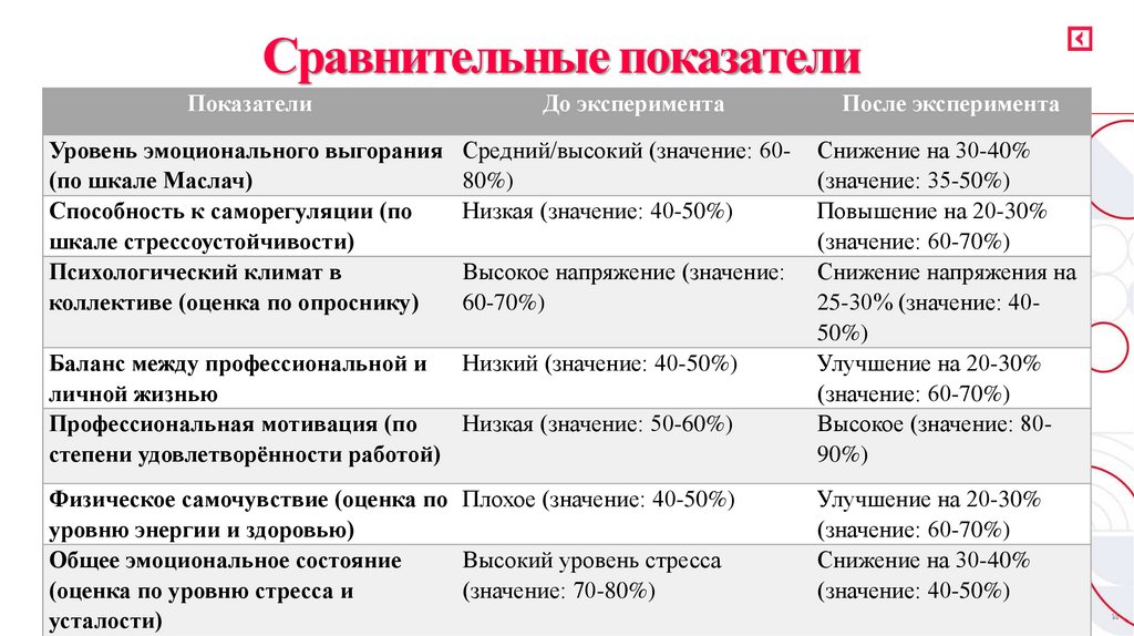 понижении уровня выгорания и улучшения эмоционального