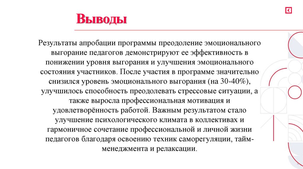 выгорание педагогов демонстрируют ее эффективность в