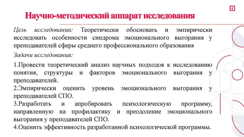 выгорания у преподавателей СПО.