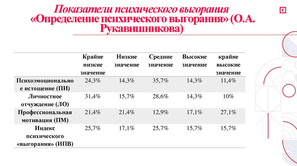 эмоционального выгорания.