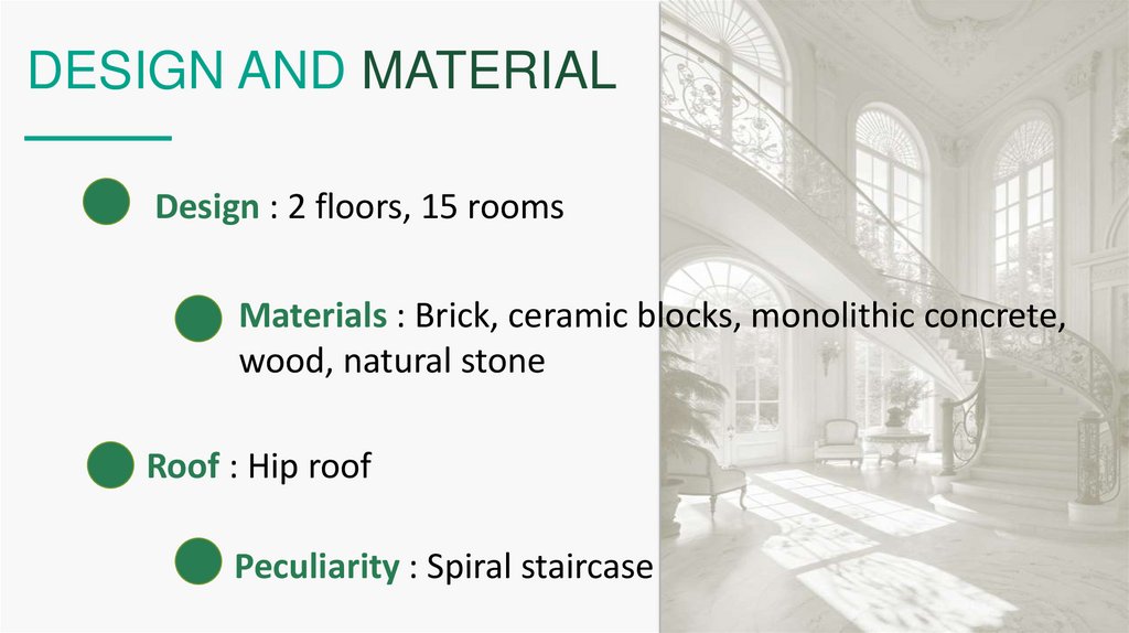 DESIGN AND MATERIALDesign : 2 floors, 15 rooms