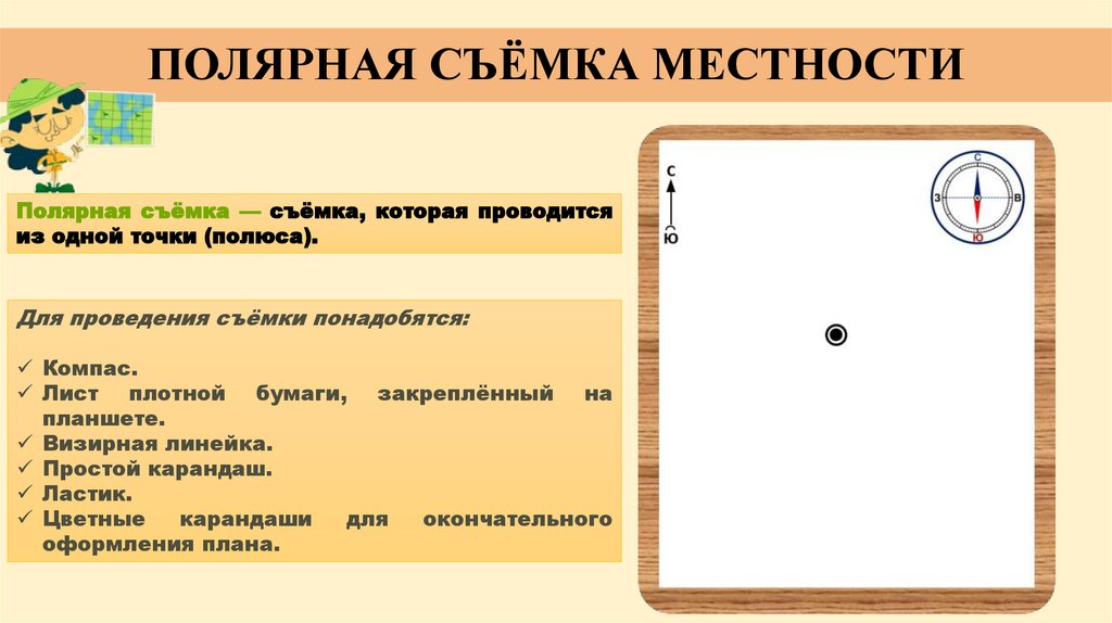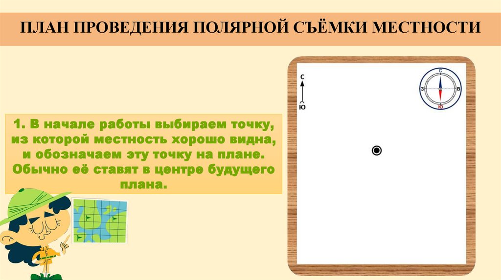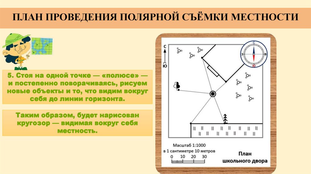 ПЛАН ПРОВЕДЕНИЯ ПОЛЯРНОЙ СЪЁМКИ МЕСТНОСТИ5. Стоя на одной точке — «полюсе» —