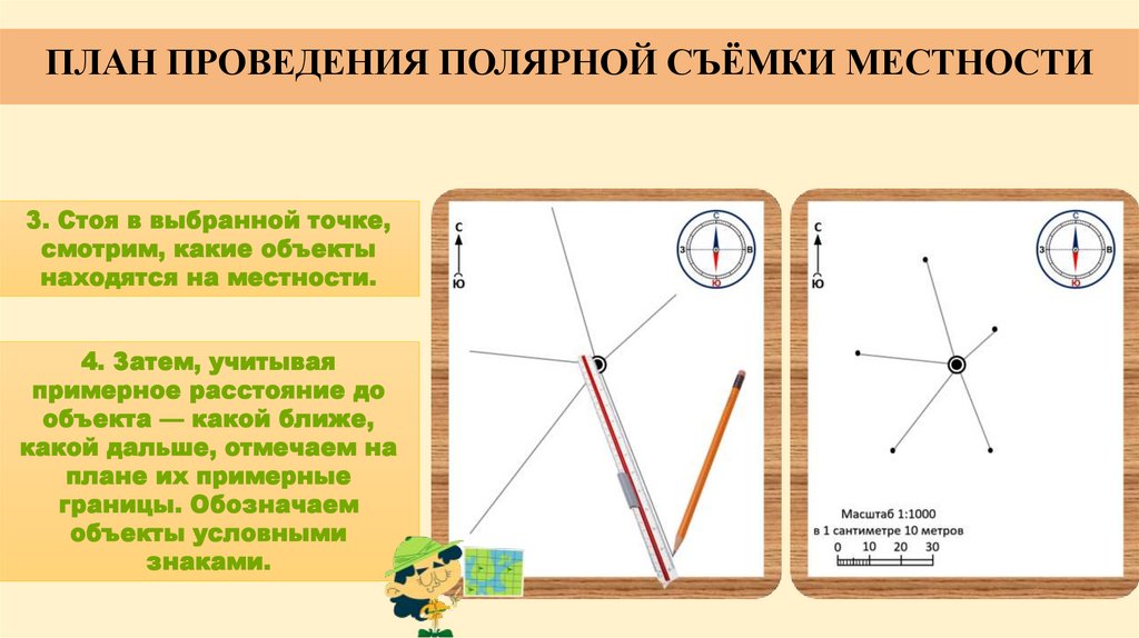 ПЛАН ПРОВЕДЕНИЯ ПОЛЯРНОЙ СЪЁМКИ МЕСТНОСТИ3. Стоя в выбранной точке,