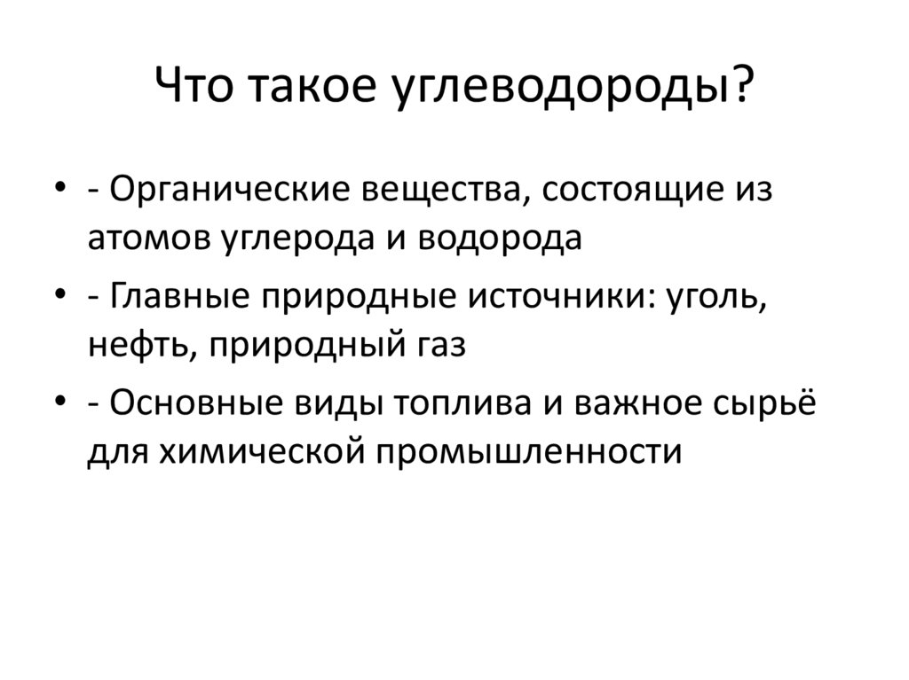 Что такое углеводороды?• - Органические вещества, состоящие из