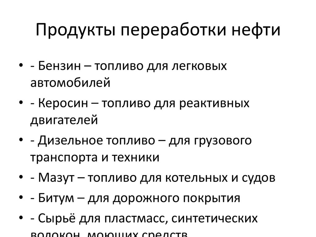 Продукты переработки нефти• - Бензин – топливо для легковых