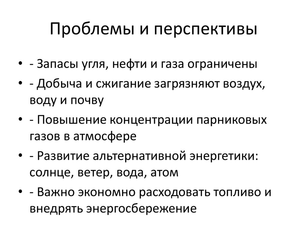 Проблемы и перспективы• - Запасы угля, нефти и газа ограничены