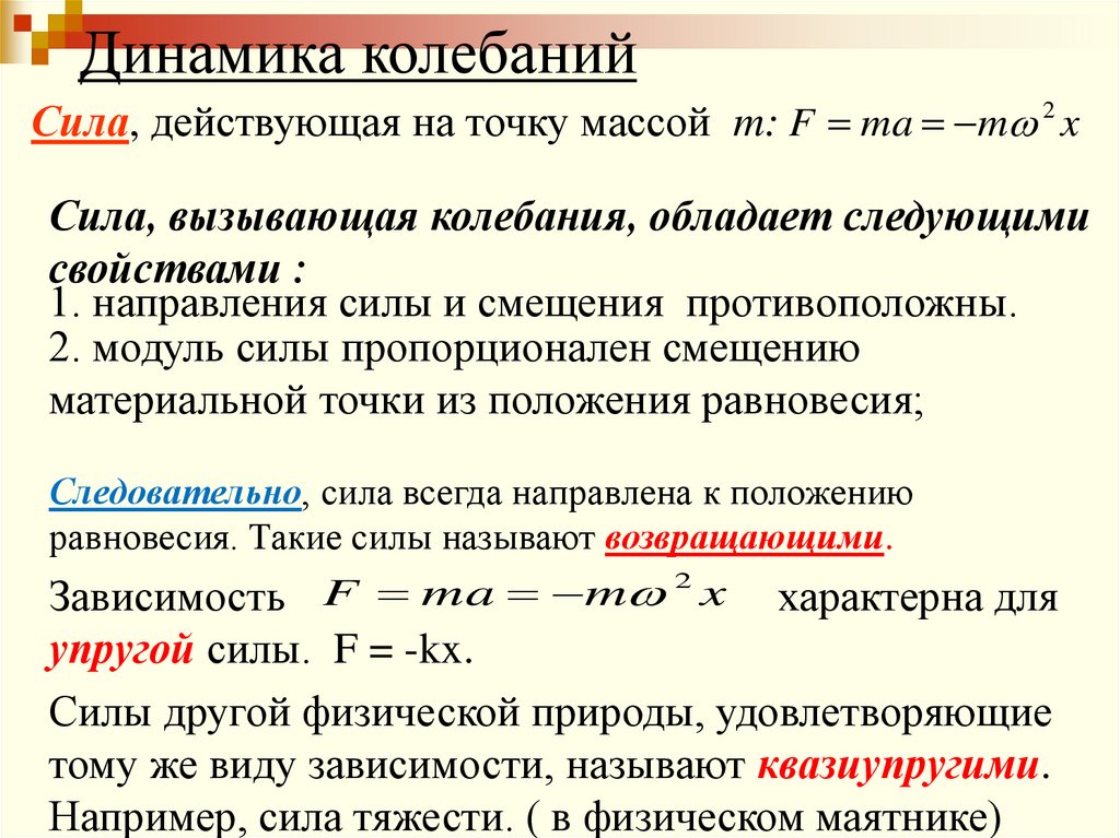 2. При выведении системы из положения равновесия должна возникать равнодействующая сила, возвращающая систему в исходное