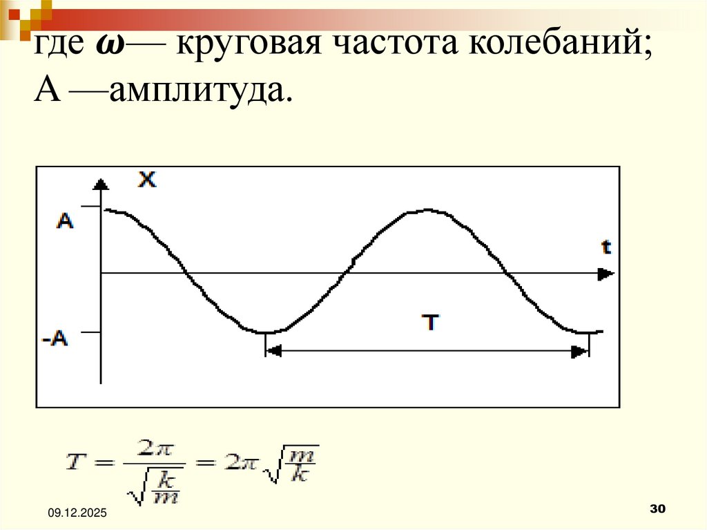 амплитудой колебаний, ω – круговая (циклическая) частота,