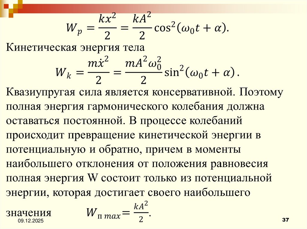 1. Колебательная система должна иметь положение устойчивого равновесия.