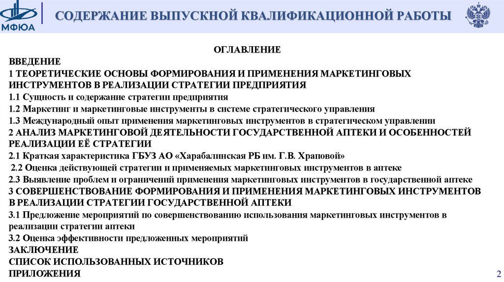 2. СОДЕРЖАНИЕ ВЫПУСКНОЙ КВАЛИФИКАЦИОННОЙ РАБОТЫ