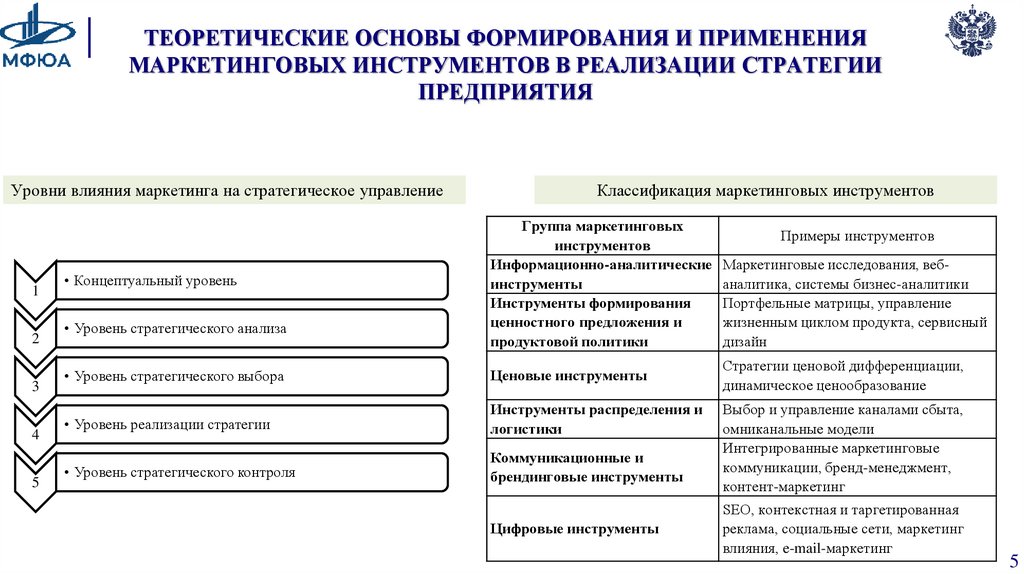 5. ТЕОРЕТИЧЕСКИЕ ОСНОВЫ ФОРМИРОВАНИЯ И ПРИМЕНЕНИЯ МАРКЕТИНГОВЫХ ИНСТРУМЕНТОВ В РЕАЛИЗАЦИИ СТРАТЕГИИ ПРЕДПРИЯТИЯ