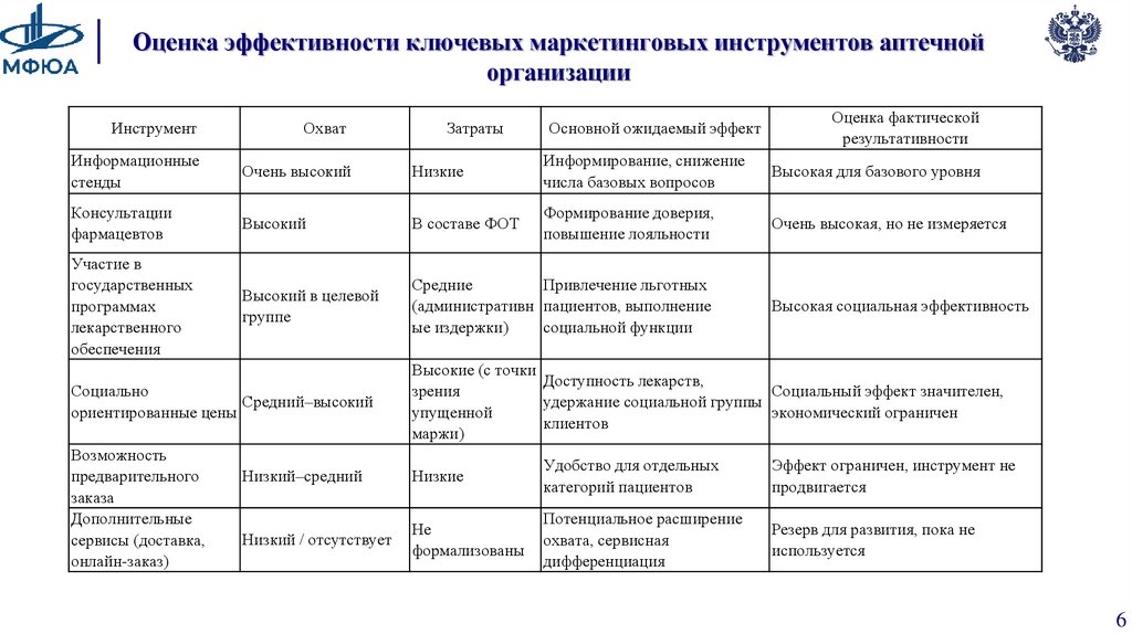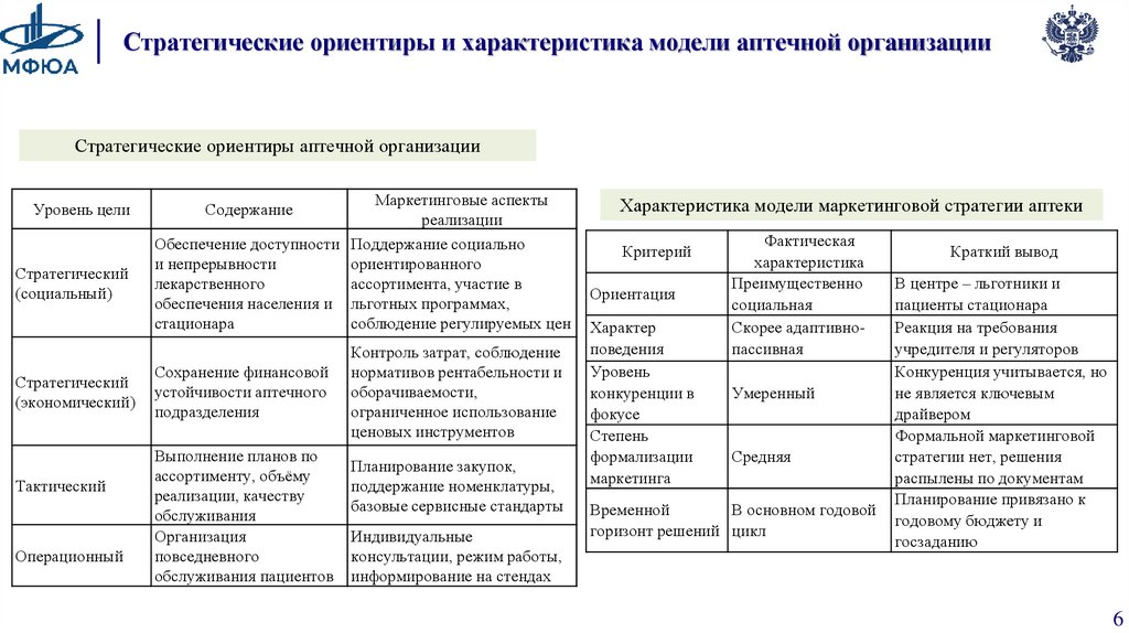 6. Стратегические ориентиры и характеристика модели аптечной организации