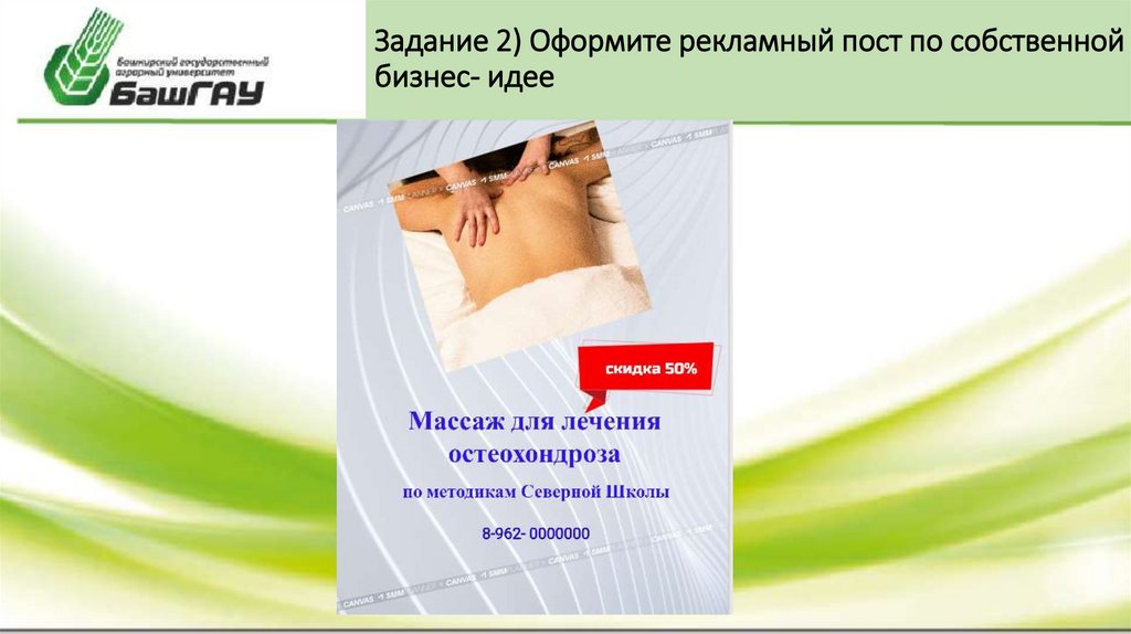 4. Задание 2) Оформите рекламный пост по собственной бизнес- идее