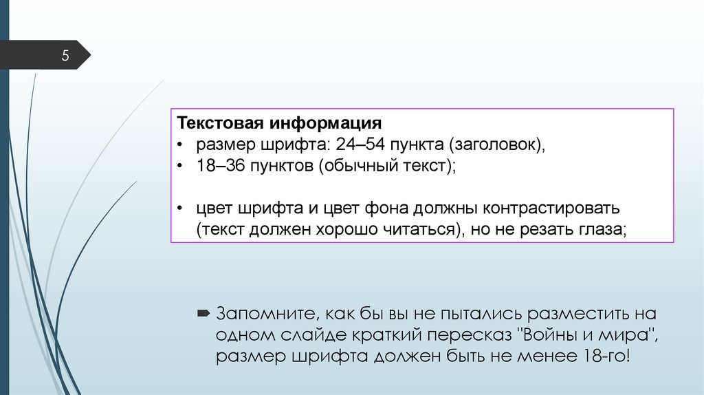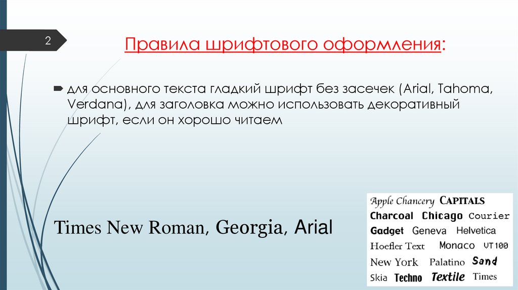 Избегайте в презентации вычурных шрифтов и анимаций,