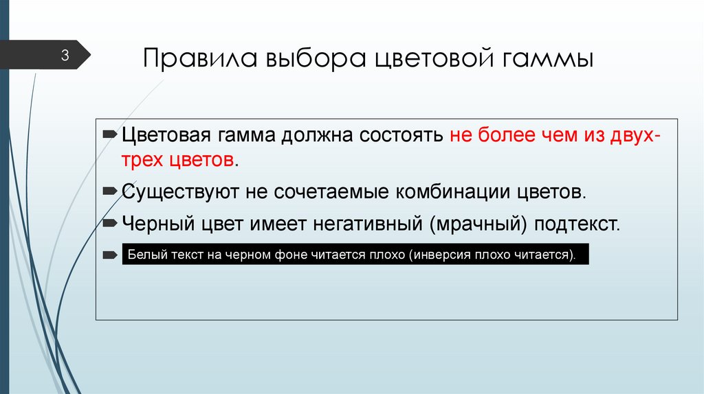 Цветовая гамма должна состоять не более чем из двухтрех цветов.