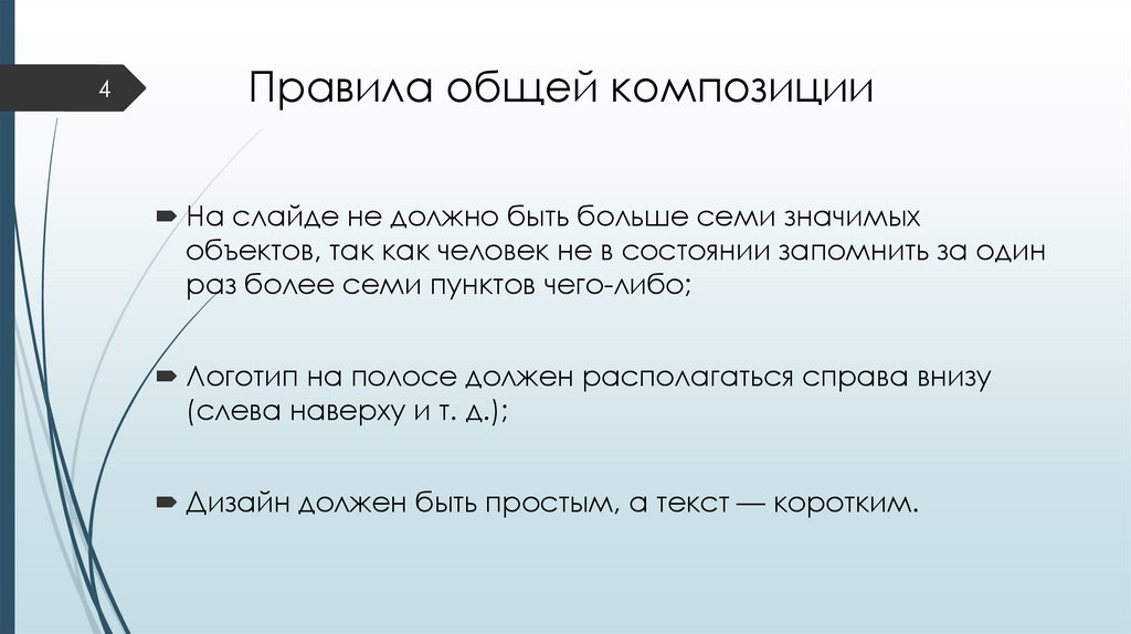 Краткость, ясность, четкость, рациональное сочетание зрительных и