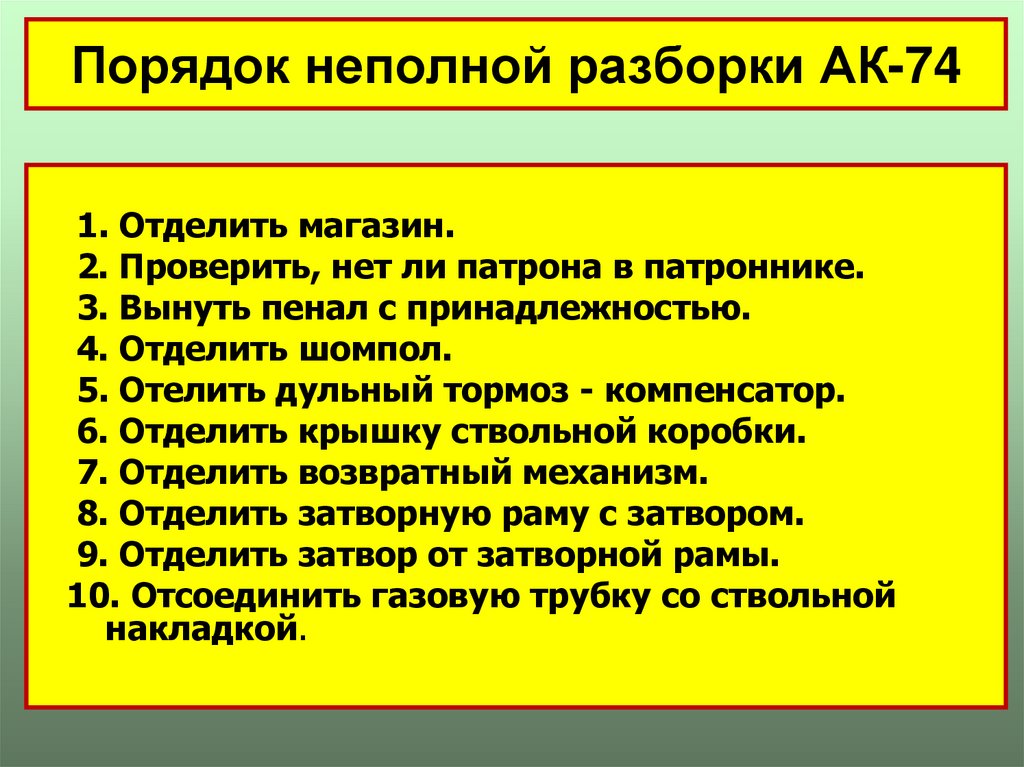 17. Порядок неполной разборки АК-74