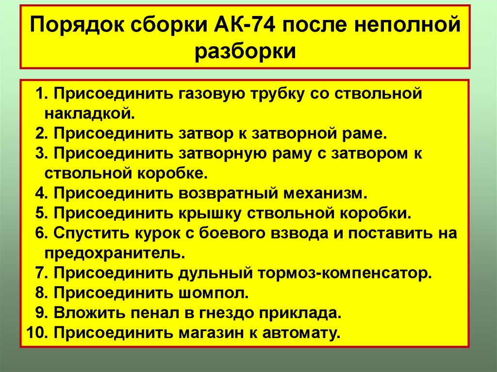 18. Порядок сборки АК-74 после неполной разборки