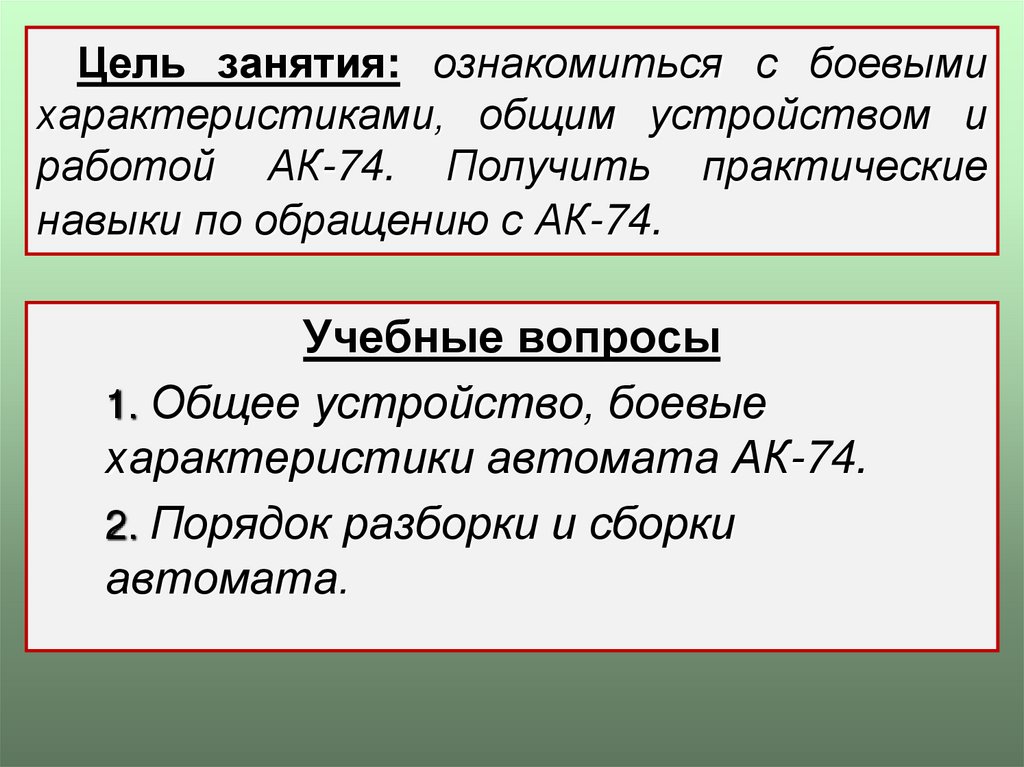 обращению с АК-74.Учебные вопросы