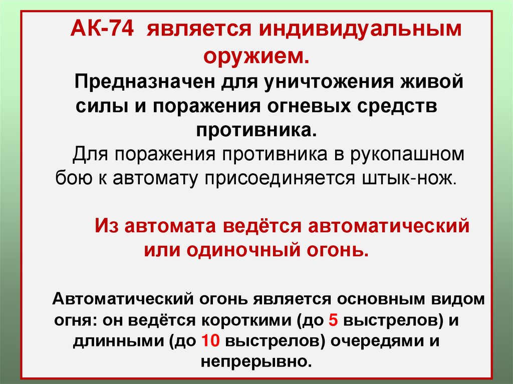 АК-74 является индивидуальныморужием.