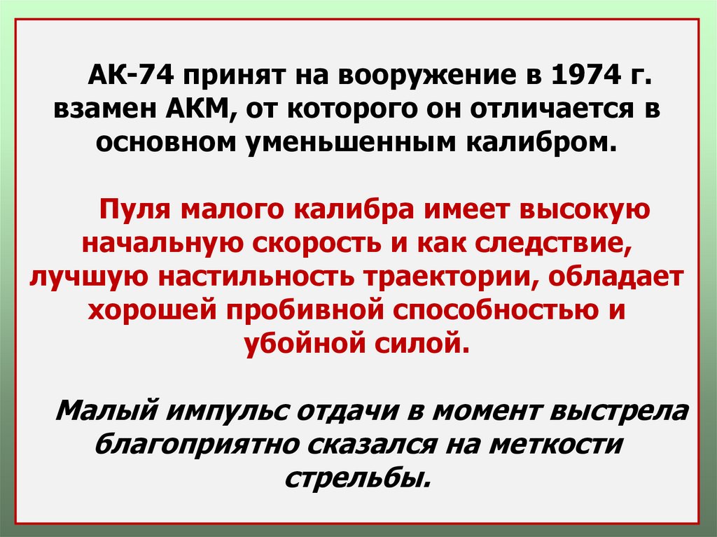 АК-74 принят на вооружение в 1974 г.взамен АКМ, от которого он отличается в