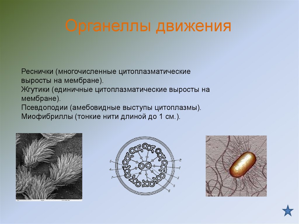 Органеллы движенияРеснички (многочисленные цитоплазматические