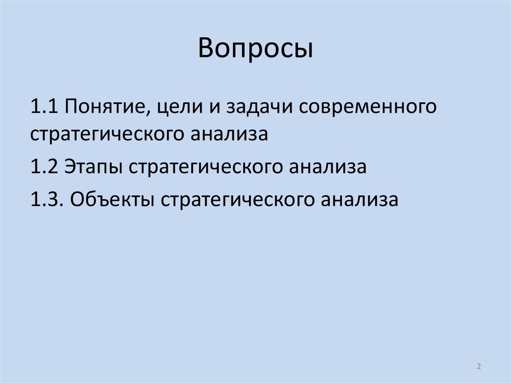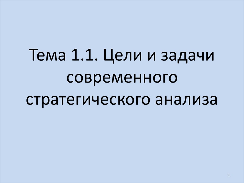 1. Тема 1.1. Цели и задачи современного стратегического анализа