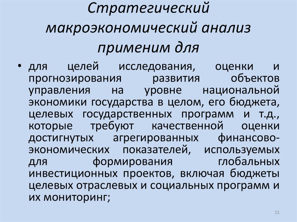 11. Стратегический макроэкономический анализ применим для