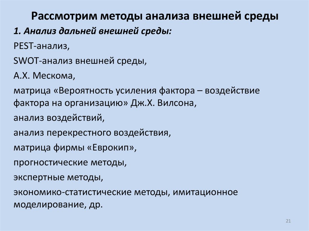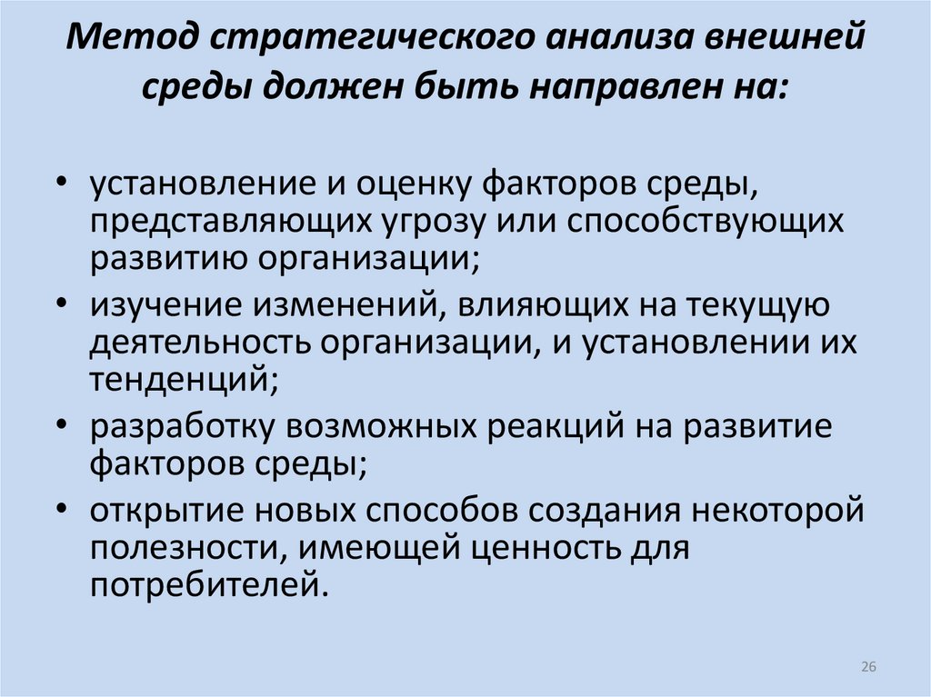26. Метод стратегического анализа внешней среды должен быть направлен на: