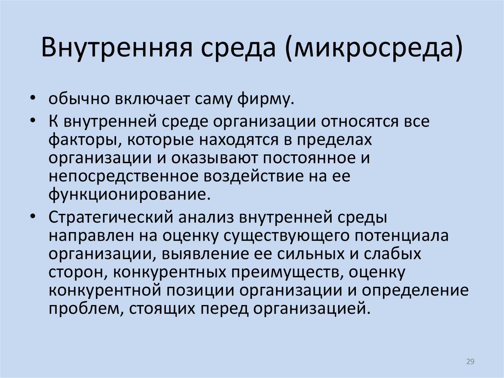 29. Внутренняя среда (микросреда)
