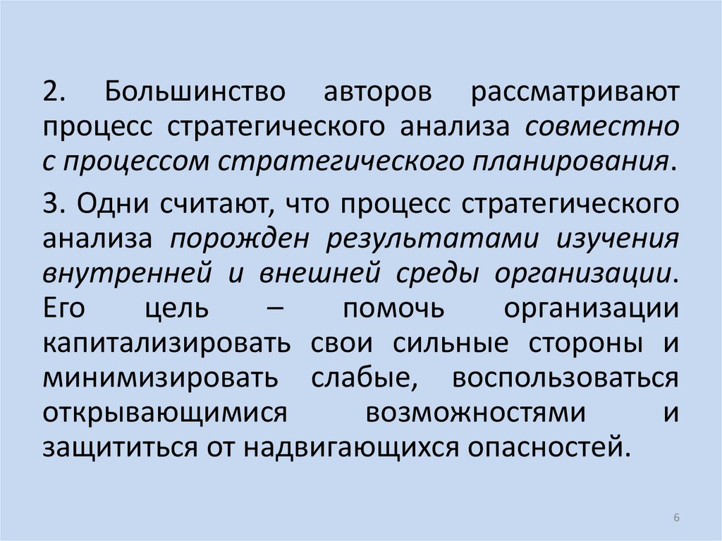 2. Большинство авторов рассматриваютпроцесс стратегического анализа совместно