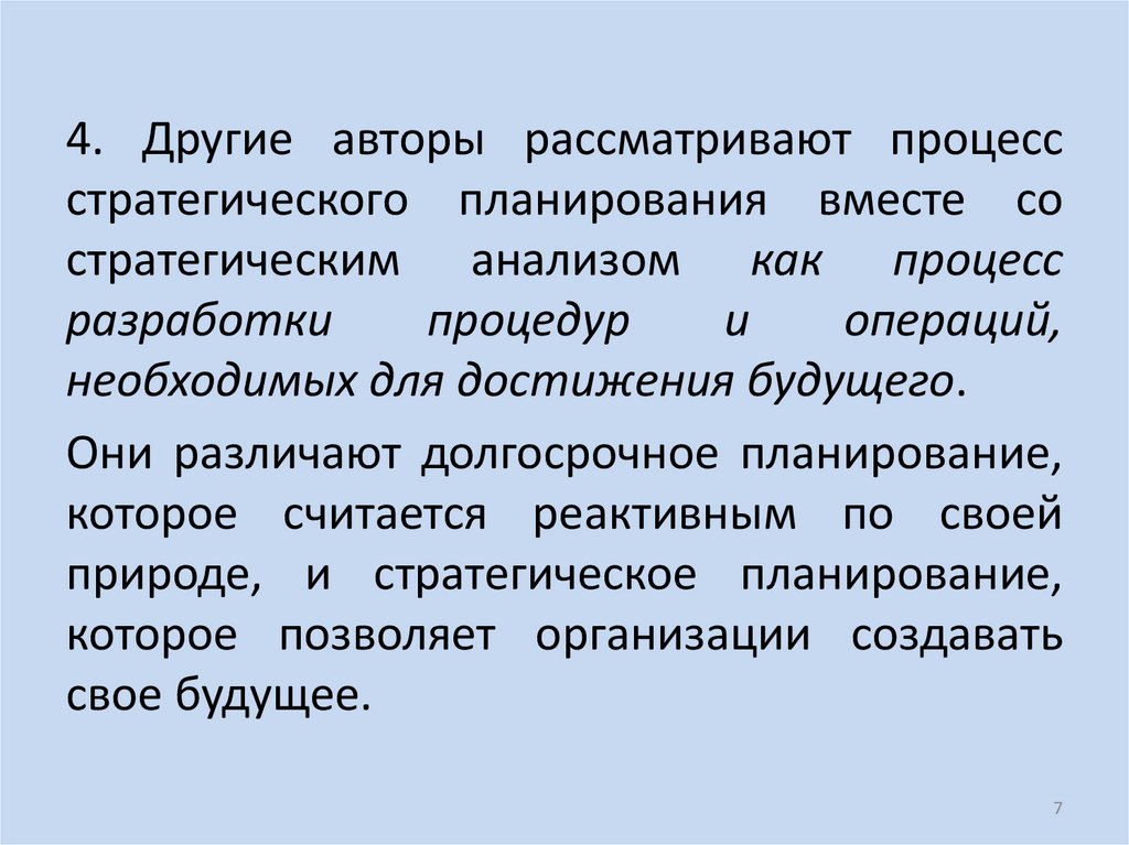 4. Другие авторы рассматривают процессстратегического планирования вместе со