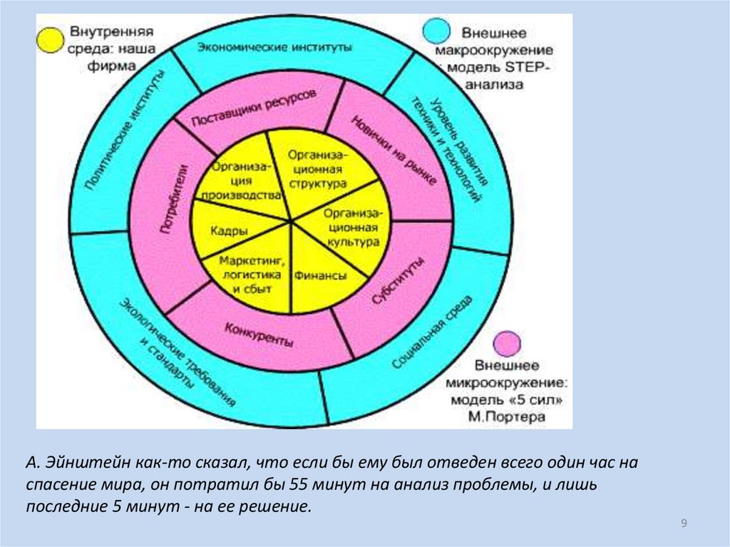 А. Эйнштейн как-то сказал, что если бы ему был отведен всего один час наспасение мира, он потратил бы 55 минут на анализ проблемы, и лишь