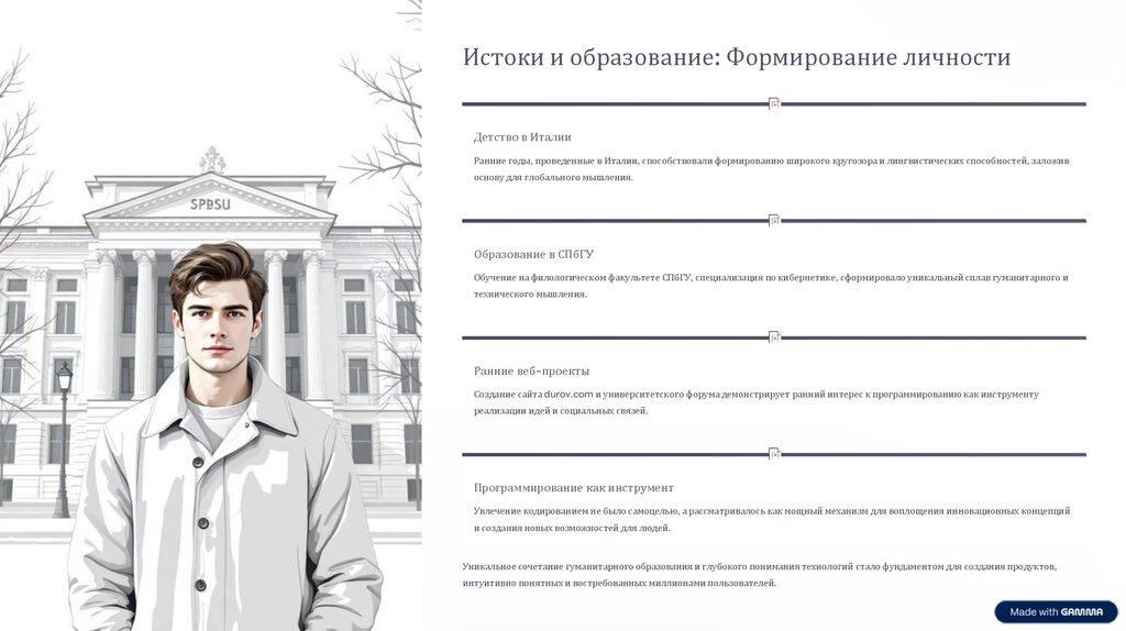 Создание сайта durov.com и университетского форума демонстрирует ранний интерес к программированию как инструменту