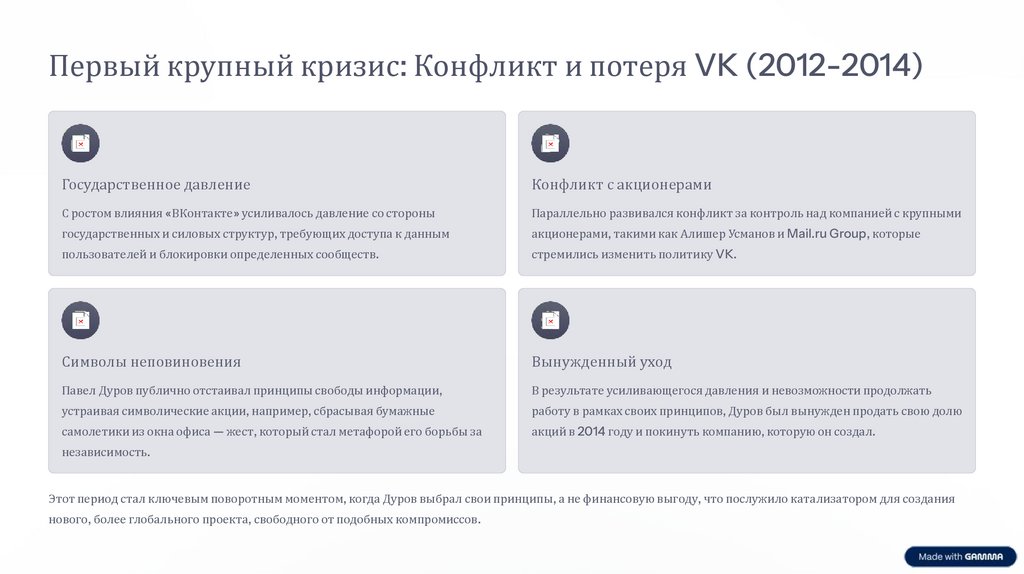 Первый крупный кризис: Конфликт и потеря VK (2012-2014)Государственное давление