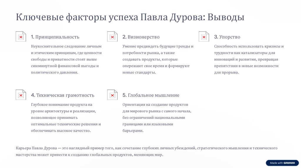 Ключевые факторы успеха Павла Дурова: Выводы1. Принципиальность
