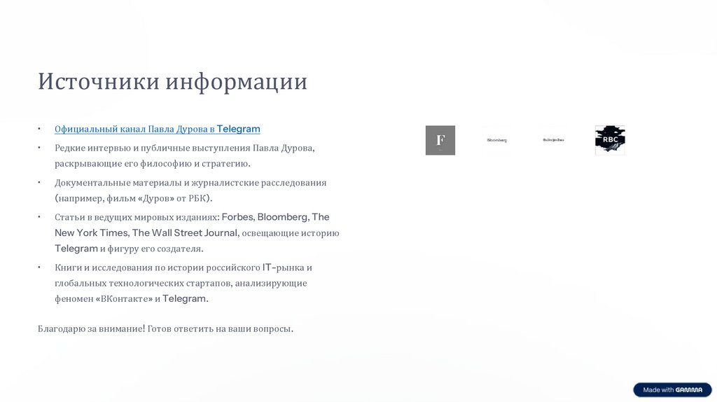 Источники информацииОфициальный канал Павла Дурова в Telegram