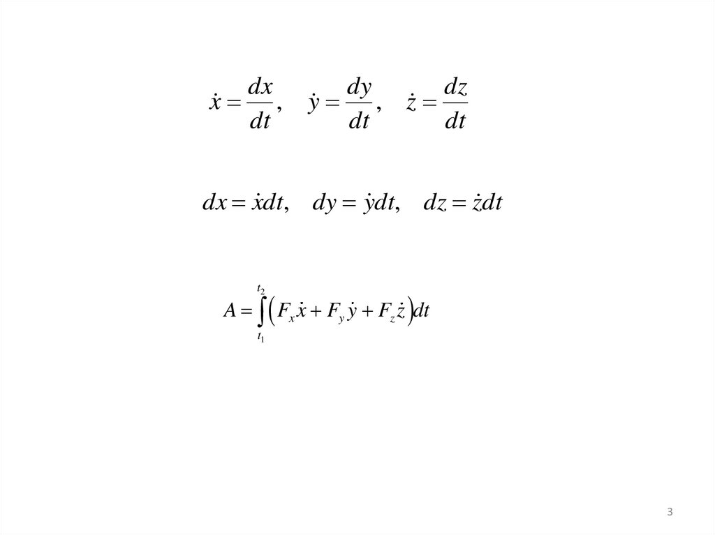 dx x dt, dy y dt, dz z dt