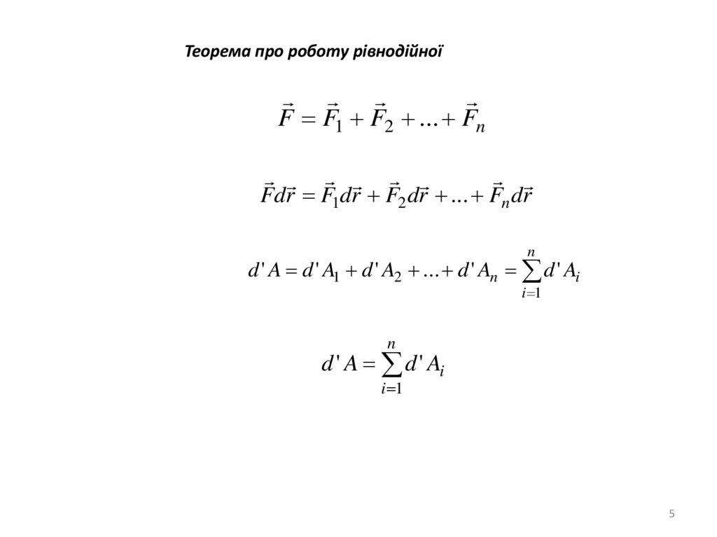 Теорема про роботу рівнодійноїF F1 F2 ... Fn
