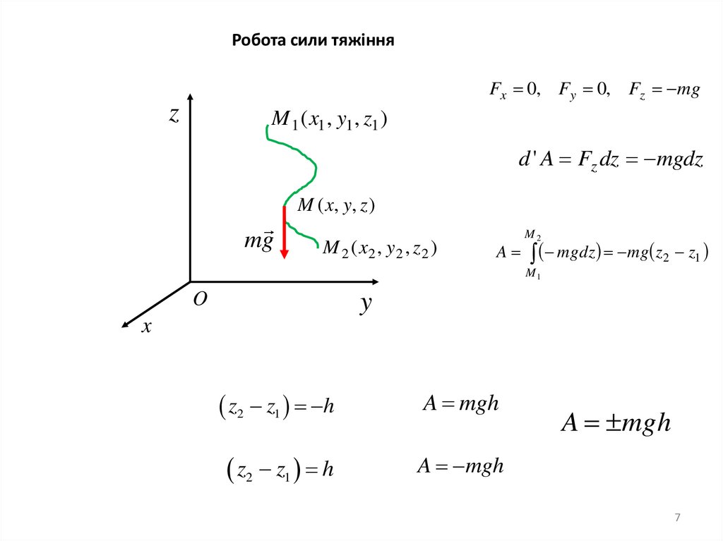Робота сили тяжінняFx 0, Fy 0, Fz mg