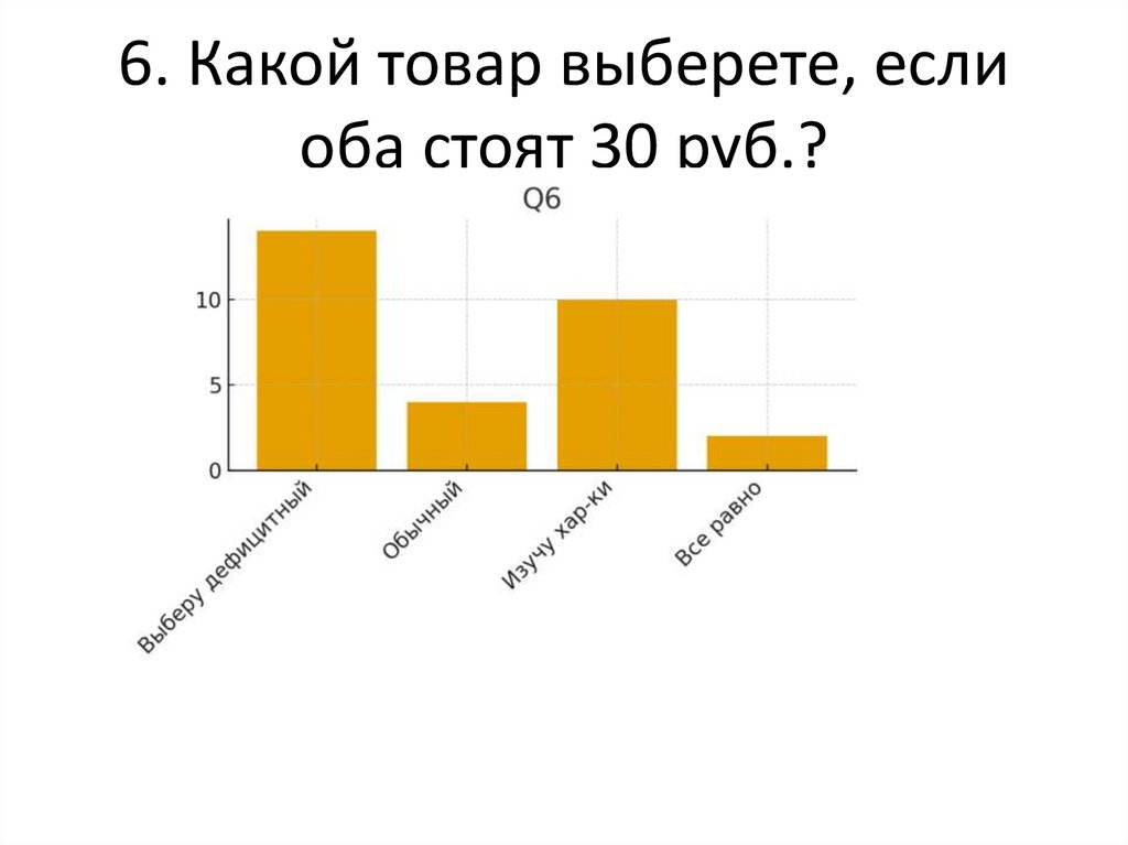 6. Какой товар выберете, еслиоба стоят 30 руб.?