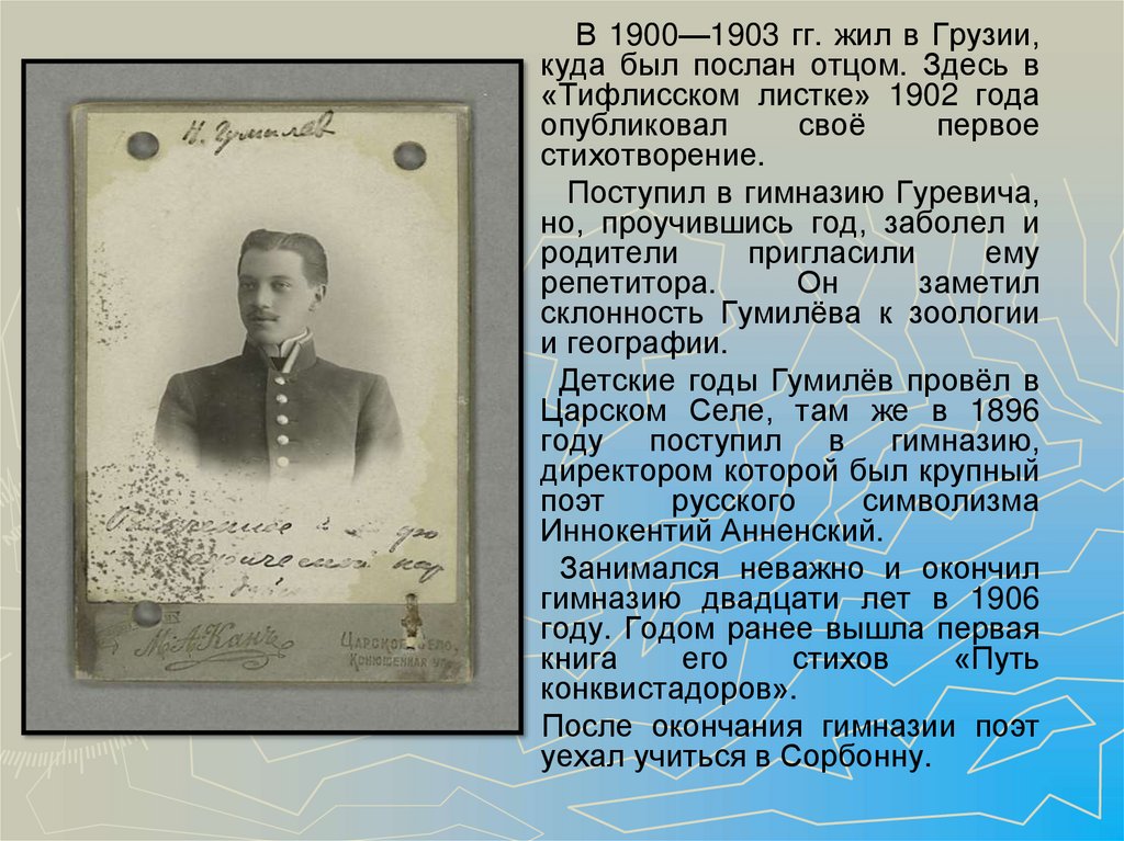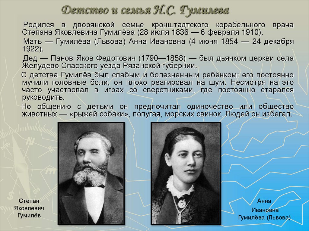 Детские годы Гумилёв провёл в