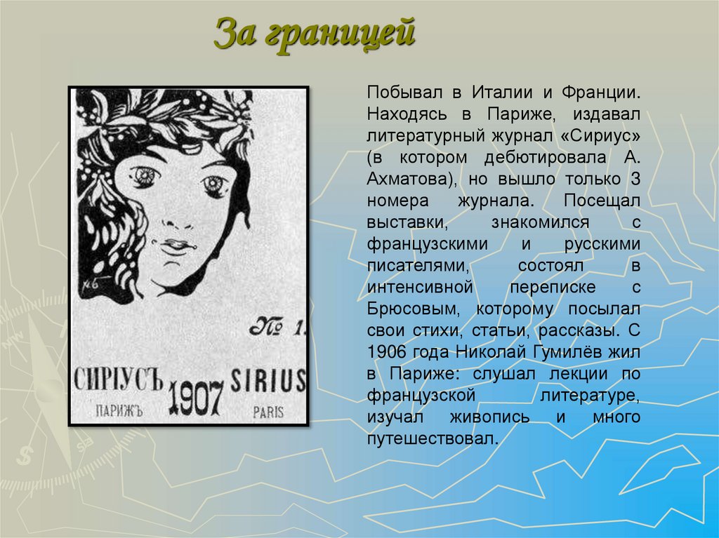Побывал в Италии и Франции.Находясь в Париже, издавал