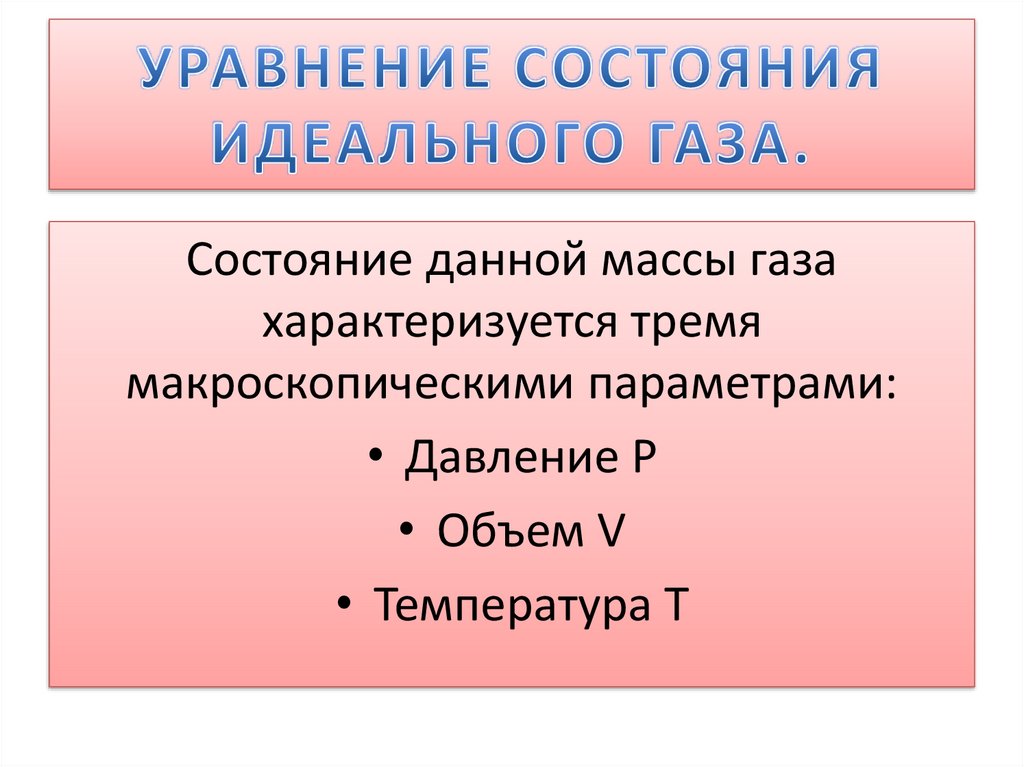 УРАВНЕНИЕ СОСТОЯНИЯ ИДЕАЛЬНОГО ГАЗА.ГАЗОВЫЕ ЗАКОНЫ